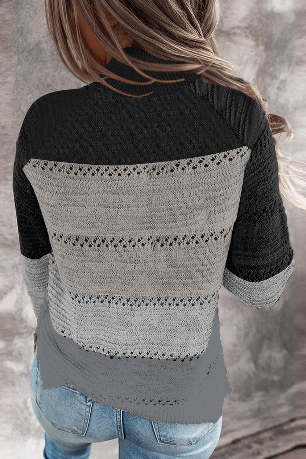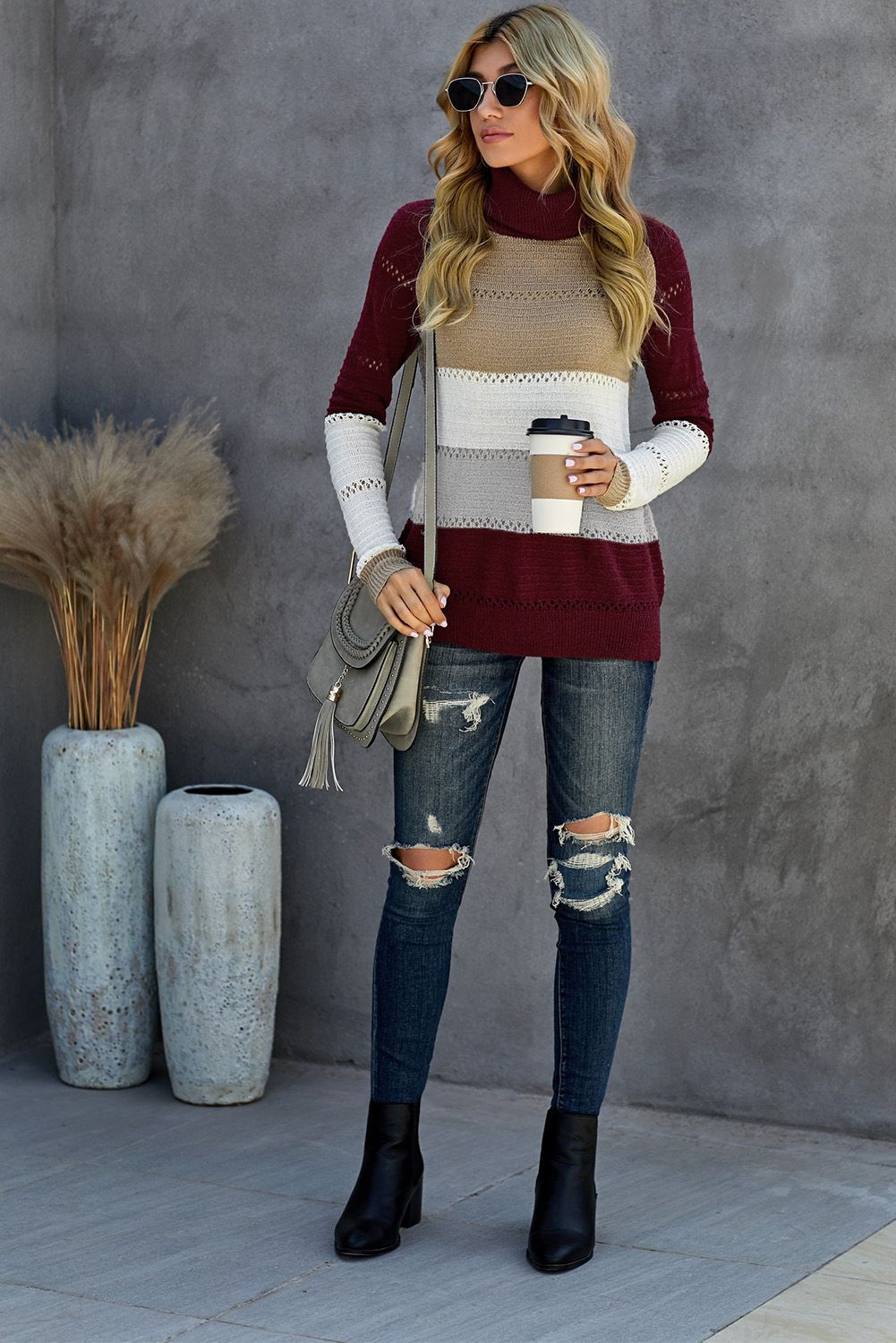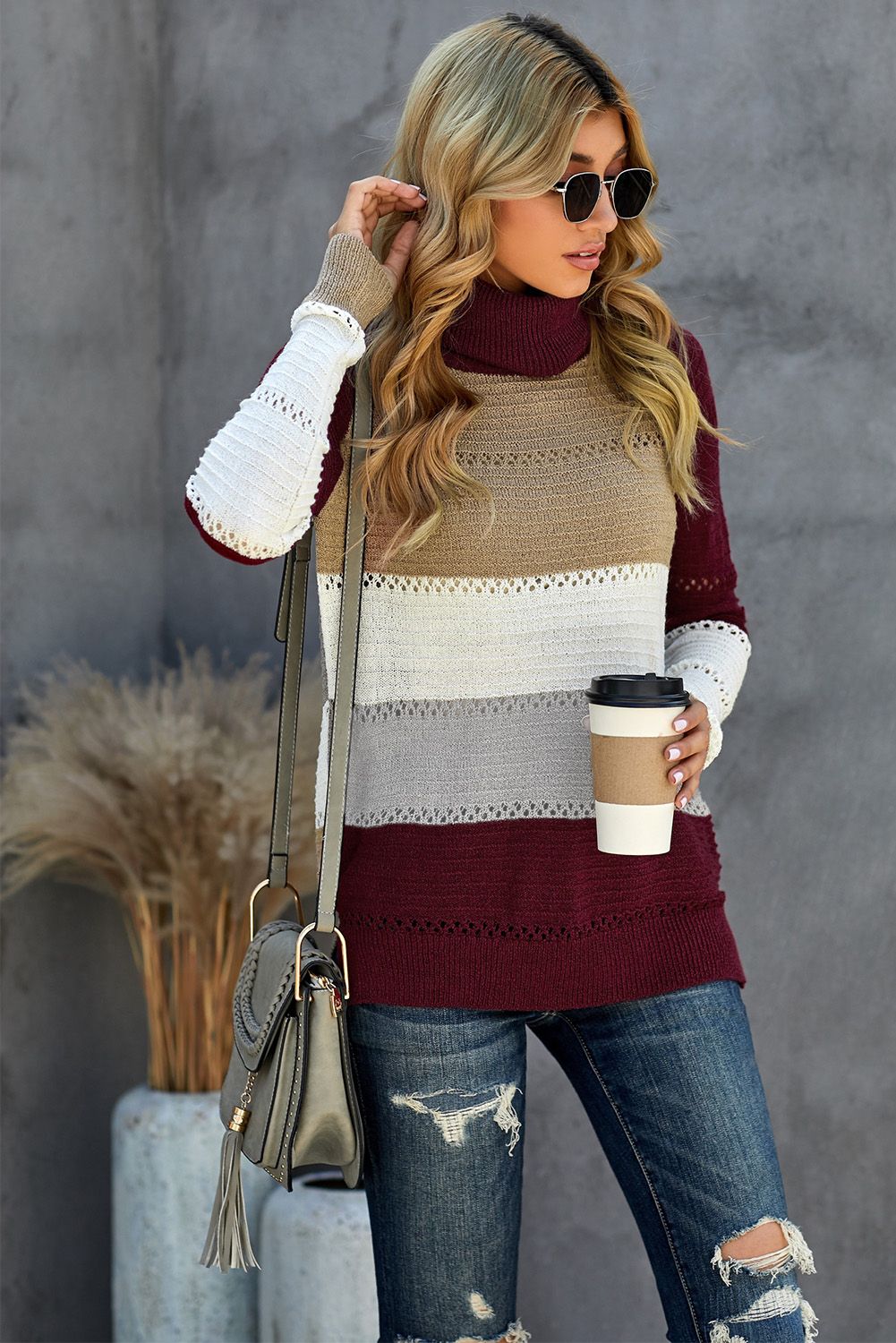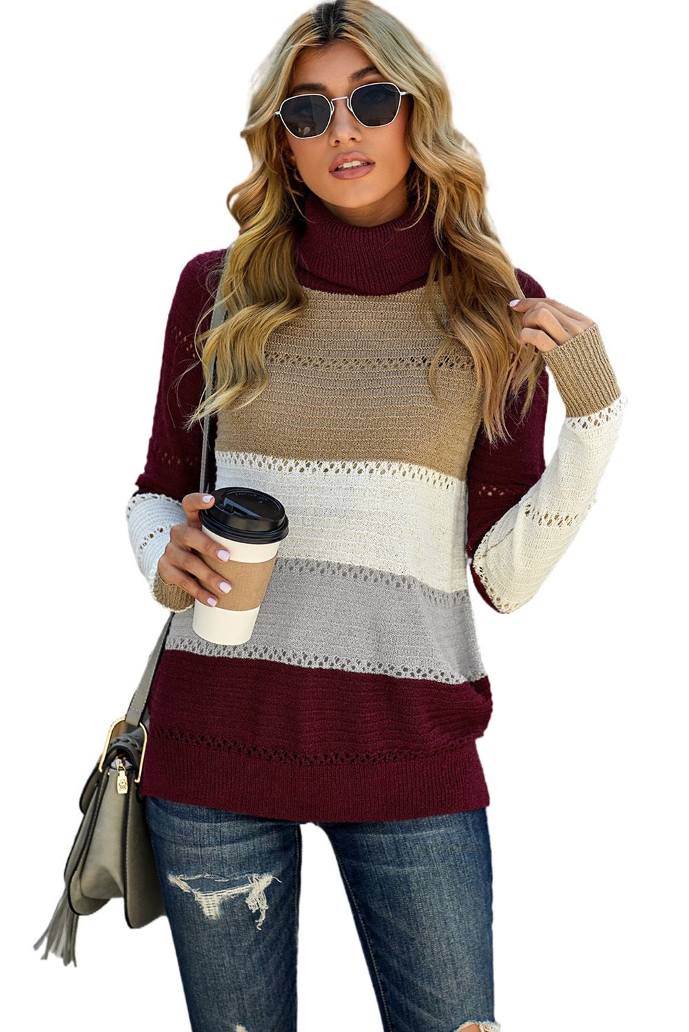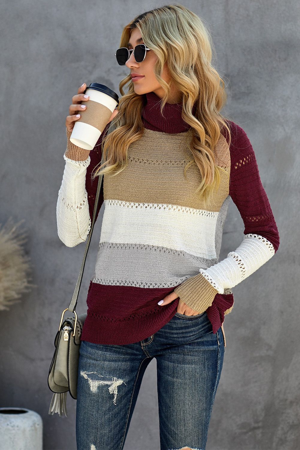 Black Highlight Colorblock Turtleneck Pullover Sweater