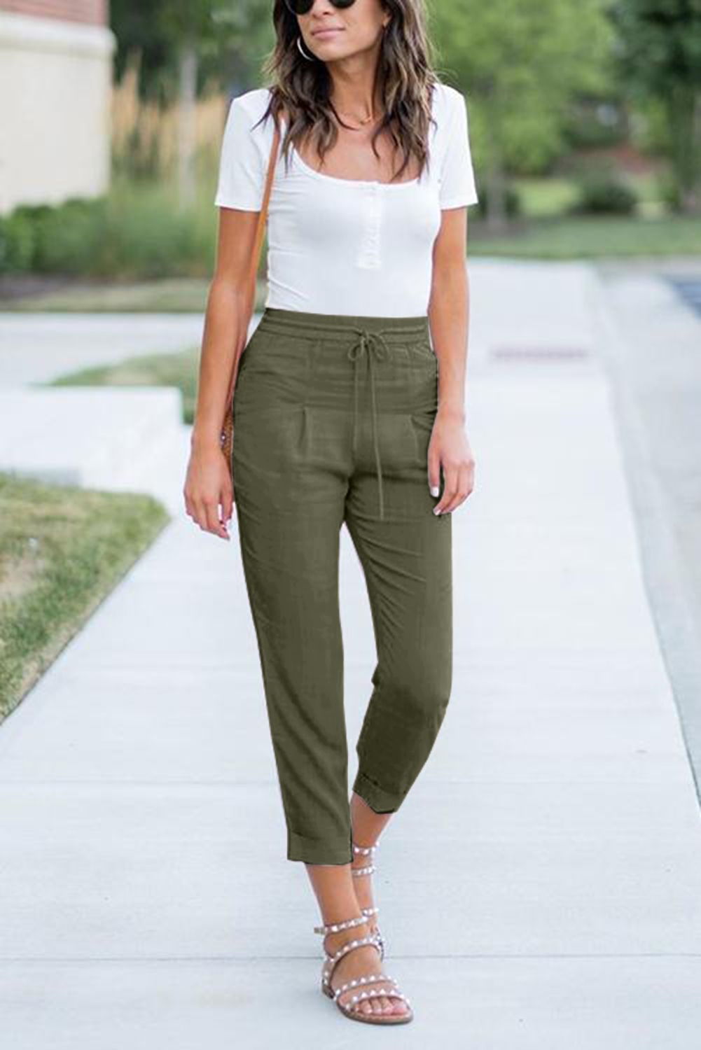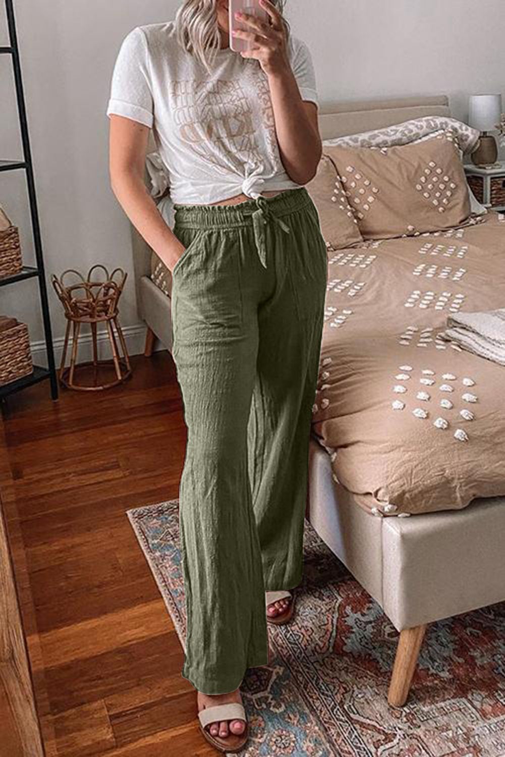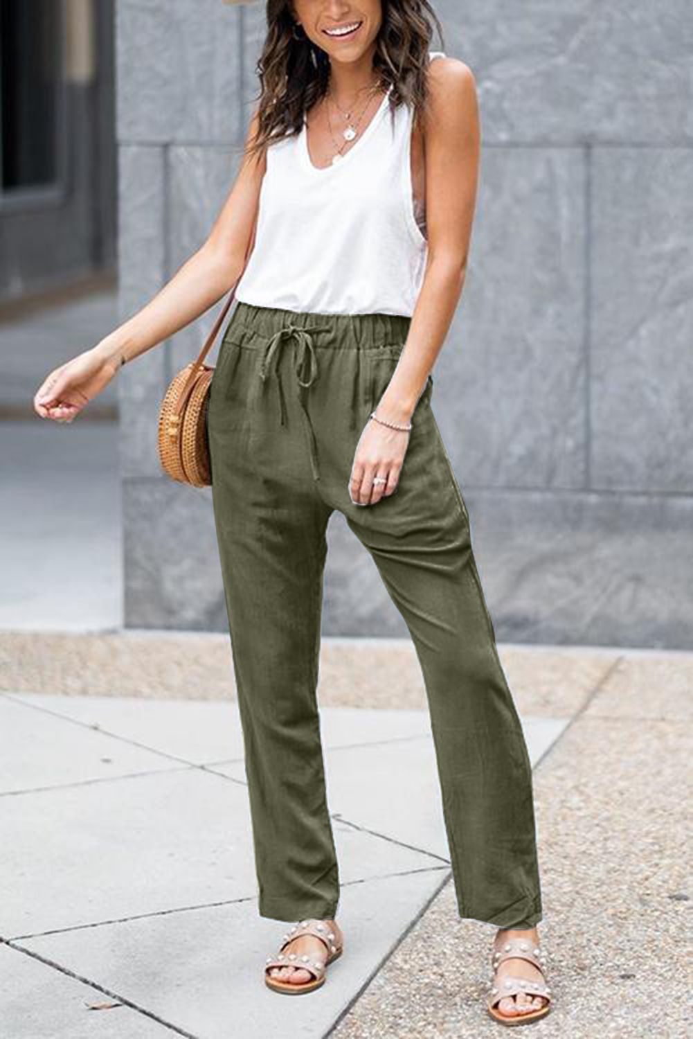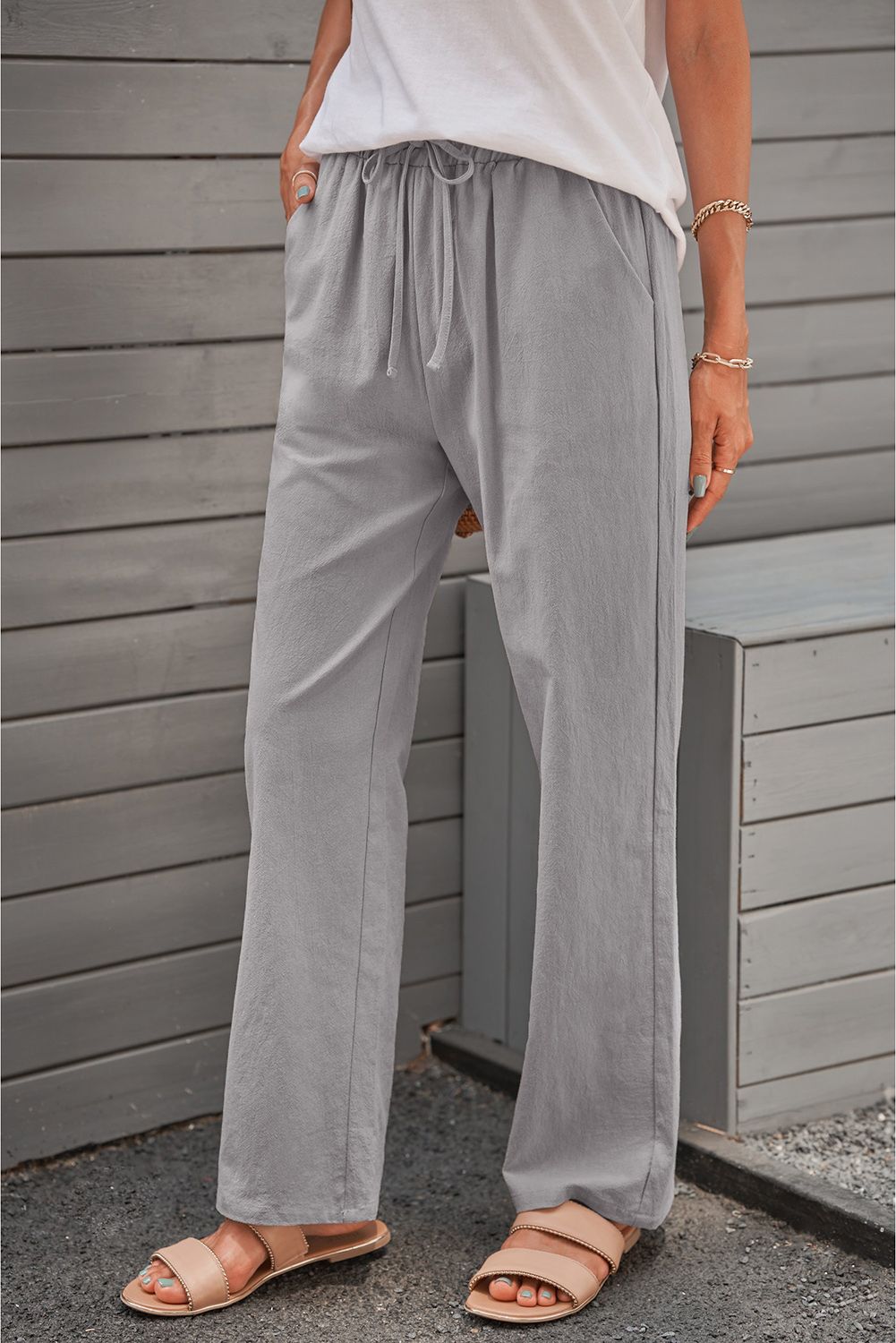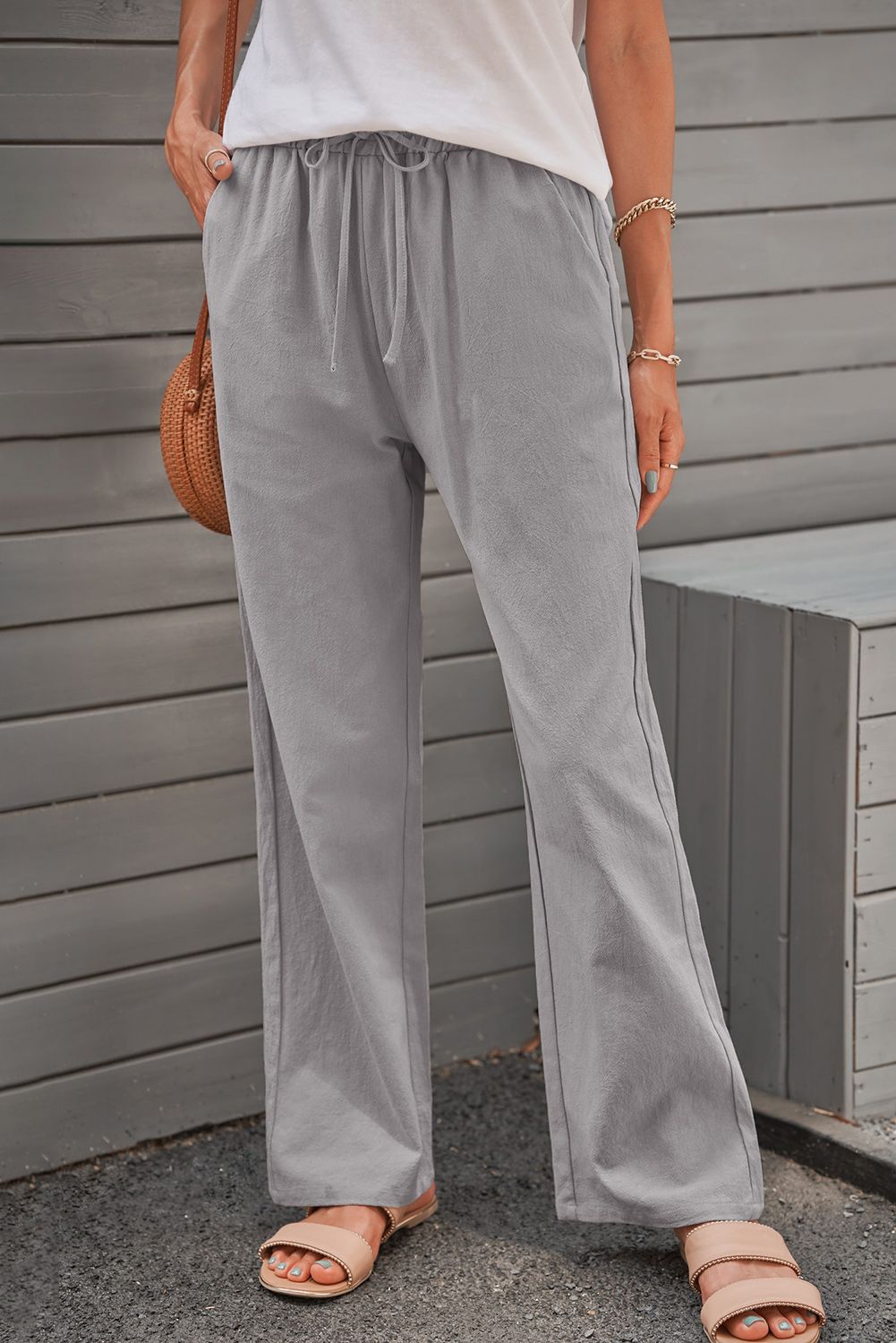 Gray Drawstring Elastic Waist Pockets Long Straight Legs Pants
