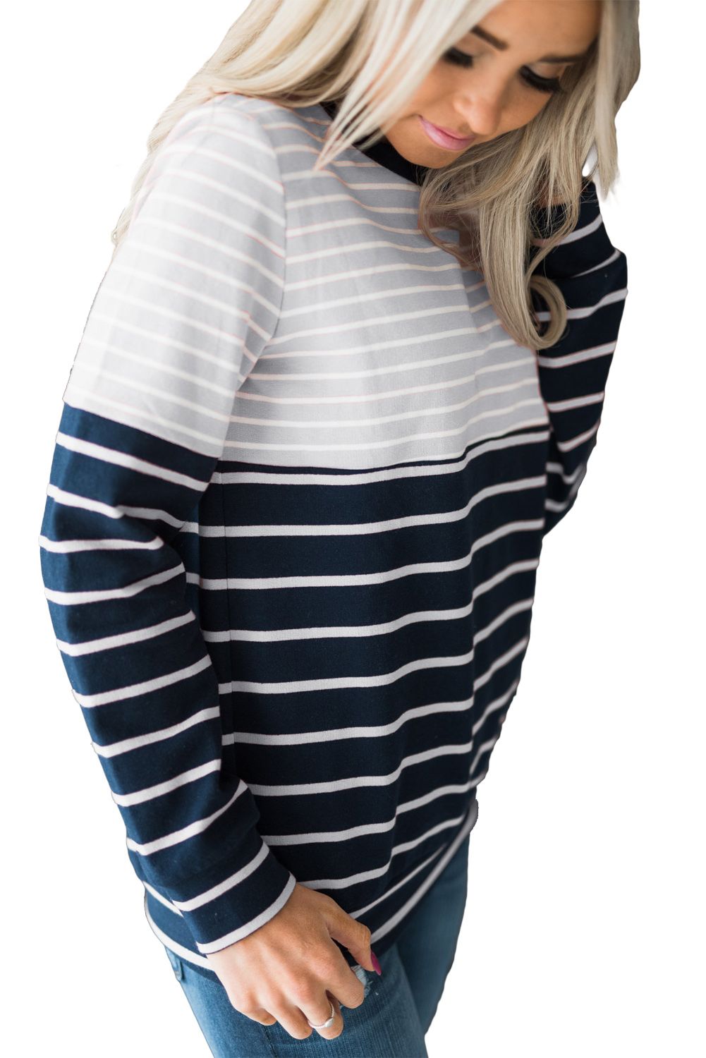 Color blocked sweatshirt accent by stripesPullover style in comfortable relaxed silhouetteA range of popular colors and sizes are availableSimple, chic and delightful sweatshirts for fall and winterWear at home, in your office suitable for different people and occasionsWholesale womens sweatshirts make you look younger and more popular