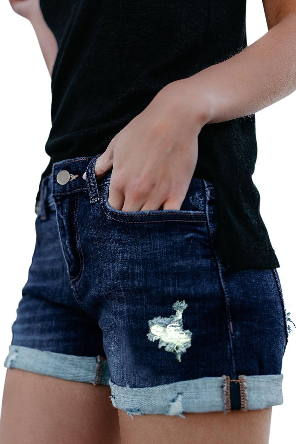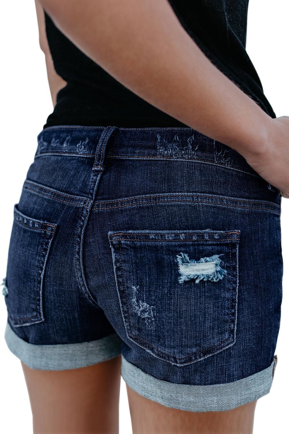 Dark Blue Distressed Denim Shorts