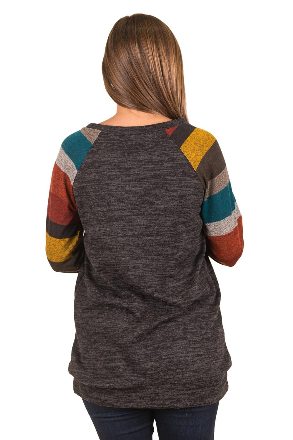 Multicolor Long Sleeve Charcoal Grey Sweatshirt