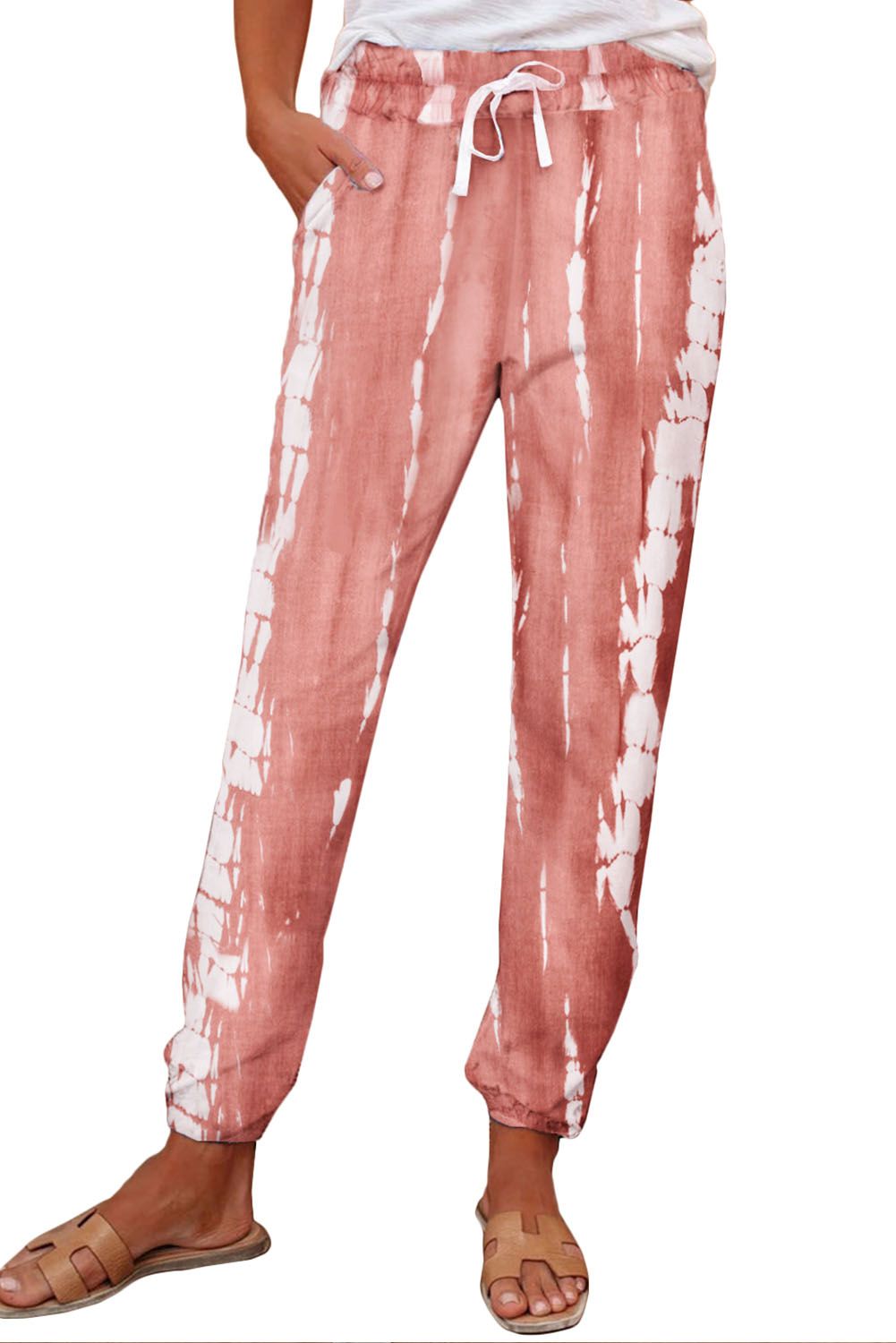Pink Pocketed Tie-dye Knit Joggers