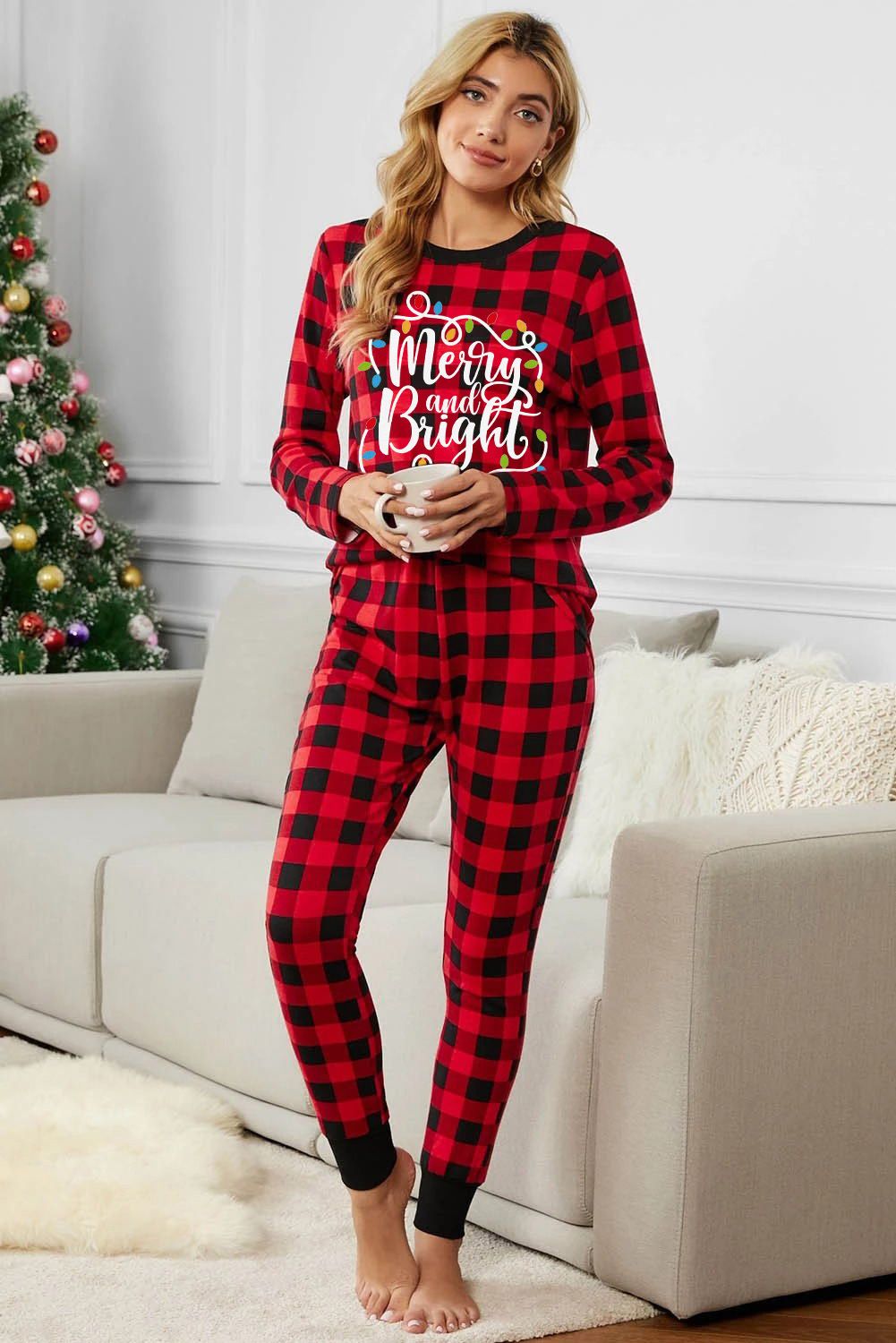 Christmas Plaid Letter Print Long Sleeve Top and Pants Loungewear