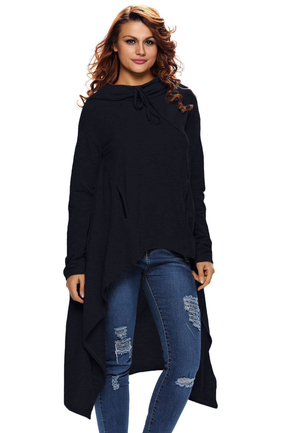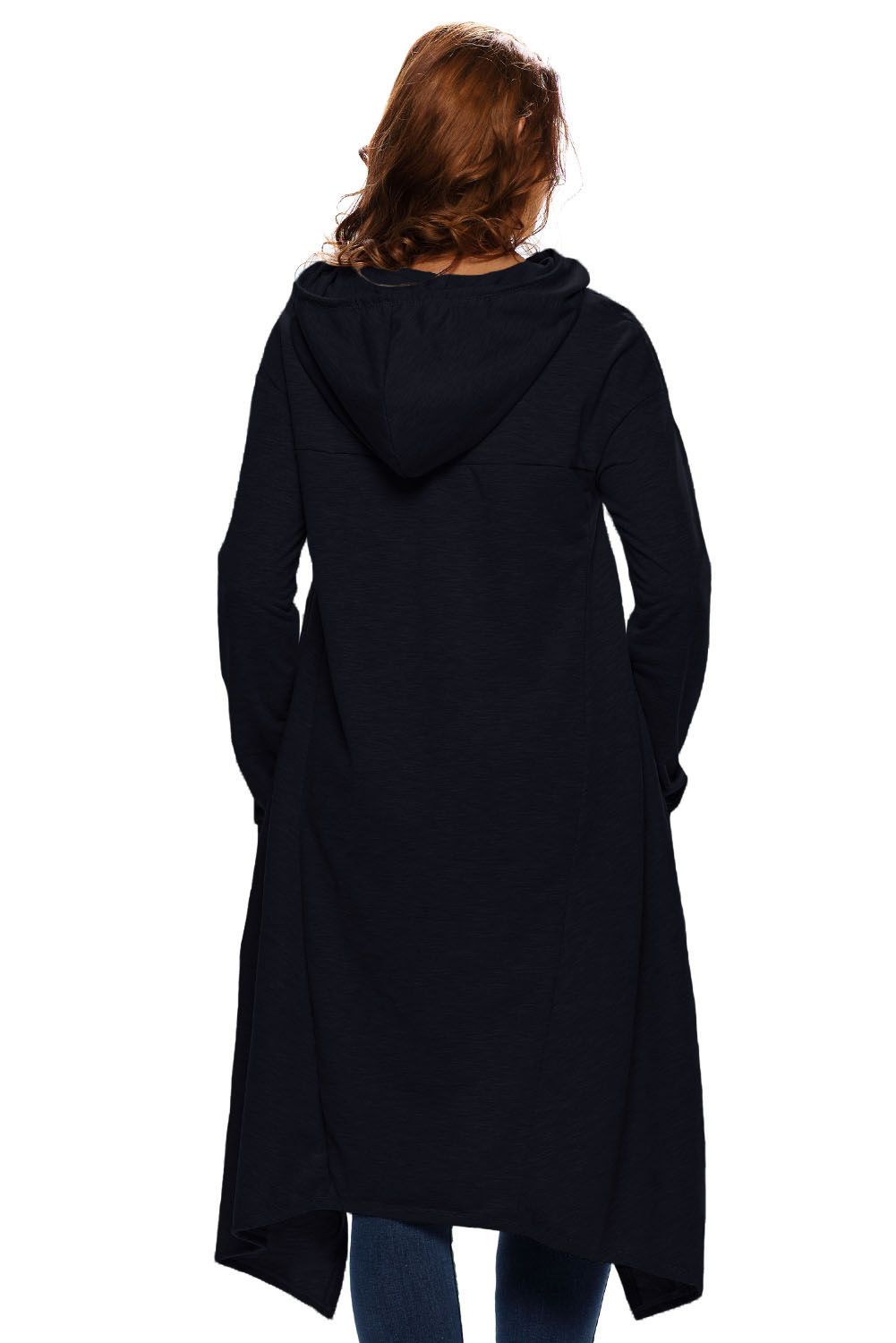 Navy Blue Plain Drawstring Irregular Oversize Hoodie